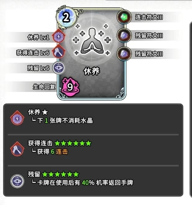 This is a charge-combo build with a very fixed construction path. Choose at least two systems from the seven available: Combo, Poison, Charge, Bleed, Burn, Defense, and Focus, then grab cost reduction to enable double-effect bursts. Gem selection is basically "take what you need" plus the fixed few Innate/Acquired/Residual/Splash. There are also Defense and DoT builds, with the same idea of stacking dual buffs then using core cards for burst damage, using cost reduction to play both core cards together. But honestly the power gap is massive - Combo Poison is the meta answer, other archetypes are just for fun.