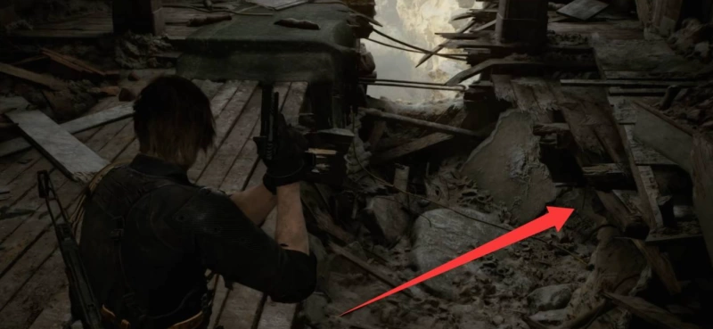 After defeating the Tyrant, head north straight into the Orphanage. Locate the hole in the floorboards and drop down immediately.