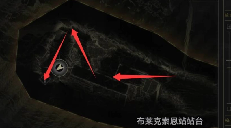 Exit the train and cross the platform. Grab the supply crate at the location shown below, then grip the rope and rappel down into the pit.